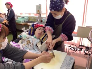 高等部では、卒業後の進路を踏まえ、集団や社会の一員としてよりよい生活を築こうとする態度や将来の生活に必要な知識・技能・態度を育てることを目標としています。